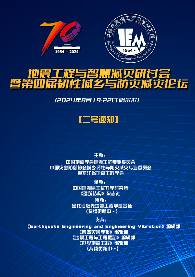 地震工程與智慧減災研討會暨第四屆韌性城鄉與防災減災論壇【二號通知】
