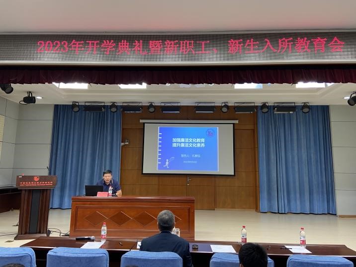 發布時間: 2023-09-05 點擊數量:120629月4日下午,我所舉行2023年新生開學典禮暨新職工、新生入所教育會,隆重歡迎150名新生入學和全體新同事入職。黨委書記、所長李山有,黨委副書記張孟平,紀委書記孔繁鈺,副所長張令心出席開學典禮,張令心主持典禮。