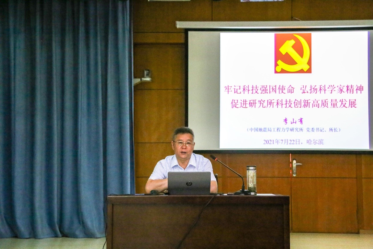 7月22日,工力所舉行黨史學習教育專題黨課報告會。工力所黨委書記、所長李山有同志以“牢記科技強國使命 弘揚科學家精神 促進研究所科技創新高質量發展”為主題向全所干部職工和學生黨員講授黨史學習教育專題黨課。