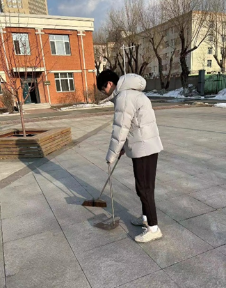 青年志愿者走上街頭開展清理打掃活動,清洗公交站牌、隔離帶、路燈桿等公共設(shè)施,清理積雪、垃圾,保持環(huán)境衛(wèi)生。此外,青年志愿者深入我所研究生生活區(qū),開展生活區(qū)清潔清理活動,清理盥洗室殘留的垃圾、水漬,清理室外人行道上的冰雪和垃圾,為研究生生活和出行提供了便捷。