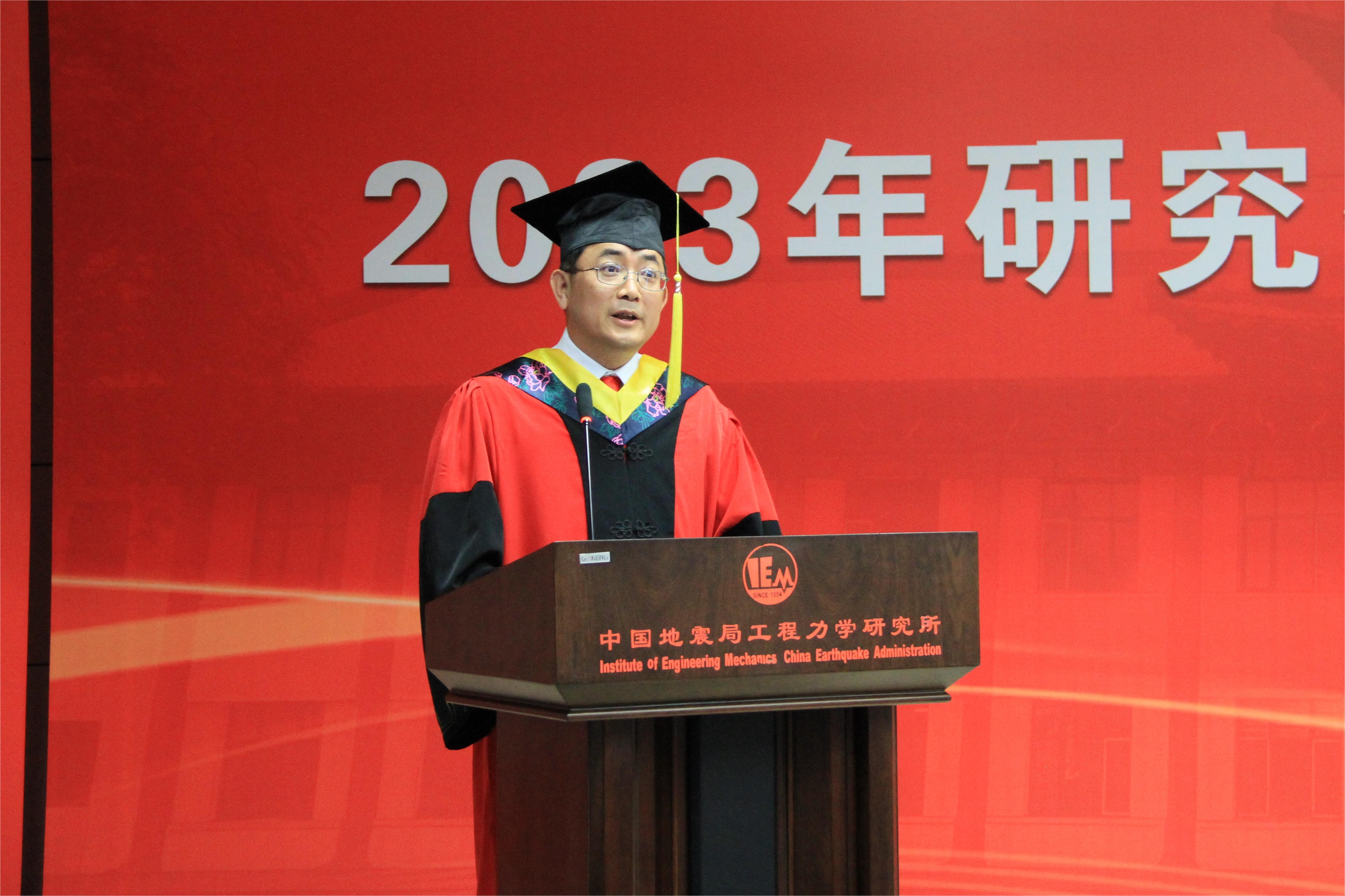 發(fā)布時間: 2023-06-30 點擊數(shù)量:73906月28日下午,中國地震局工程力學研究所2023年畢業(yè)典禮暨學位授予儀式在主樓四樓會議室隆重舉行。所學位評定委員會主任孫柏濤,黨委書記、所長李山有,黨委副書記張孟平,紀委書記孔繁鈺,副所長張令心、溫瑞智出席學位授予儀式。溫瑞智主持儀式。