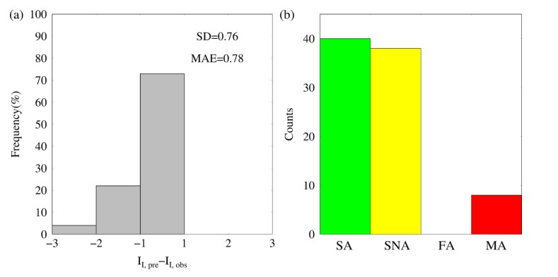 圖3 儀器地震烈度預測及警報性能