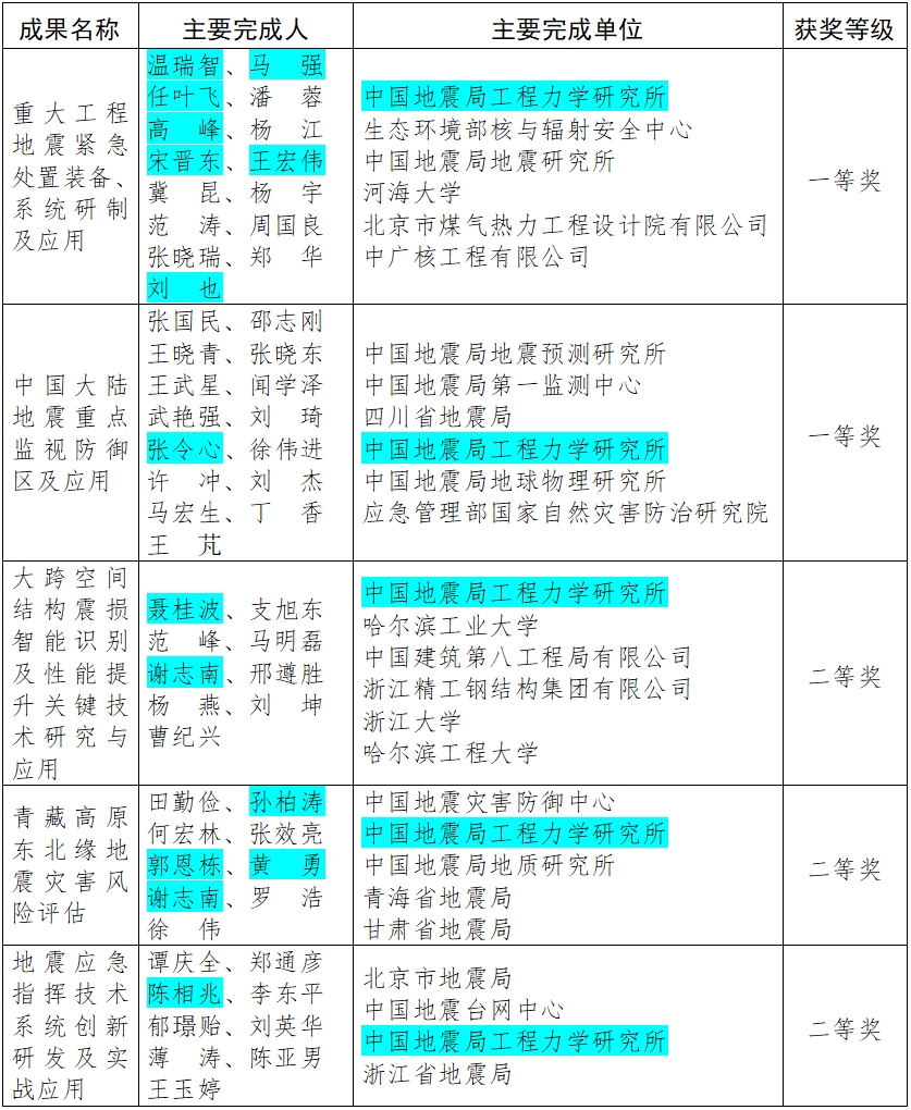 發布時間: 2025-07-17 點擊數量:12051近日,中國地震局公布了2025年度防震減災科研成果獎評選結果,我所作為牽頭單位完成的成果獲一等獎1項、二等獎1項,作為參與單位獲一等獎1項、二等獎2項。